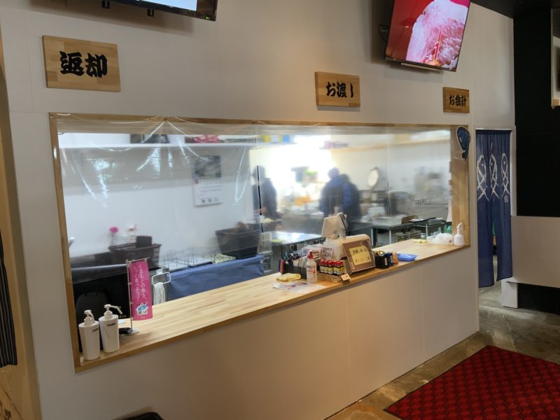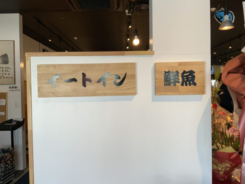 店内に入って、左側がイートインコーナー。右側が鮮魚コーナーです。