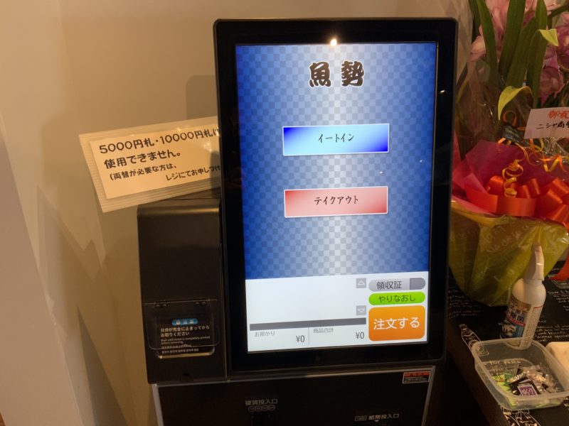 注文は奥にある食券機で。イートインだけでなく、テイクアウトもここで注文できます!