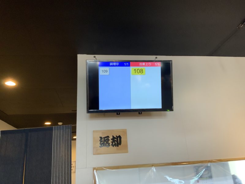 ポチッとすると、調理中のところに番号が表示されます。出来上がると呼ばれるのでレシートの番号を要確認!