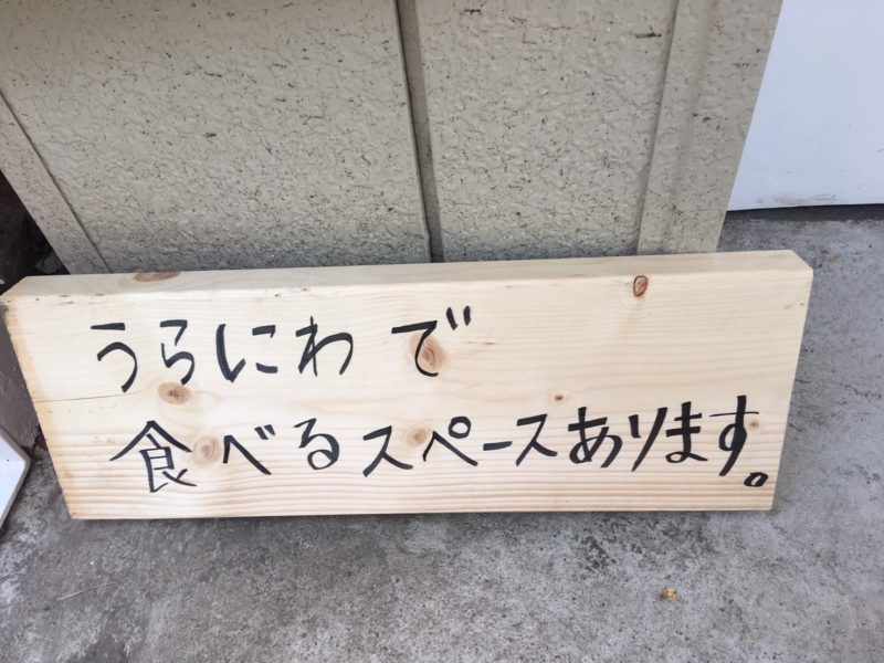 お店の前にもテーブルが1つありますが、うらにわにも食べるスペースがあるとのこと。