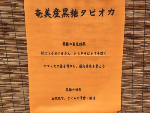 タピオカは、台湾の生タピオカを、奄美産の黒糖シロップに漬け込んで作られているそうで、上品な甘さです。しかも黒糖には、美肌効果や腸内環境を整える効果、血圧低下やむくみ解消の効果もあるとか…。