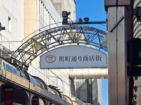 鶴屋百貨店とHAB@熊本の間にある駕町商店街。