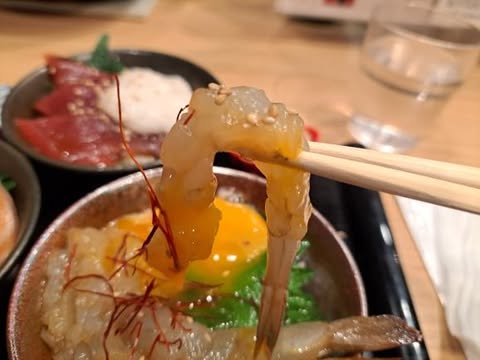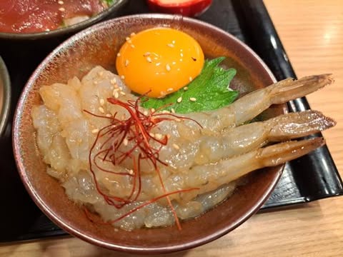 甘辛ユッケの味にエビの甘さとプリッとした弾力、さらに卵のトロっと濃厚な味が加わり、この海鮮丼の組み合わせはぜひ食べてもらいたい1品です。