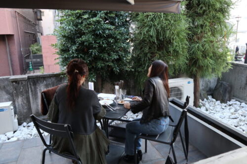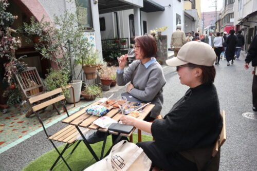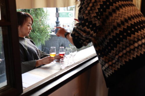 上乃裏通りの真ん中で楽しそうにワインを飲んでいらしたカッコいいお姉さま方。天気も良く、気温も心地よく最高の外ワイン日和です。まるで海外の風景みたい~。