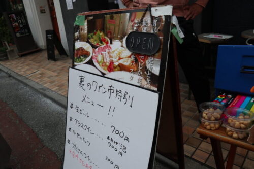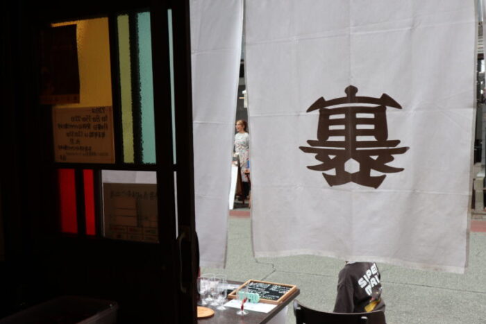 飲食店に関してはこの「裏」というカッコいい暖簾や旗が掲げてあるお店は、ワイングラス持ち込みでふらりと寄れるシステムになっております。