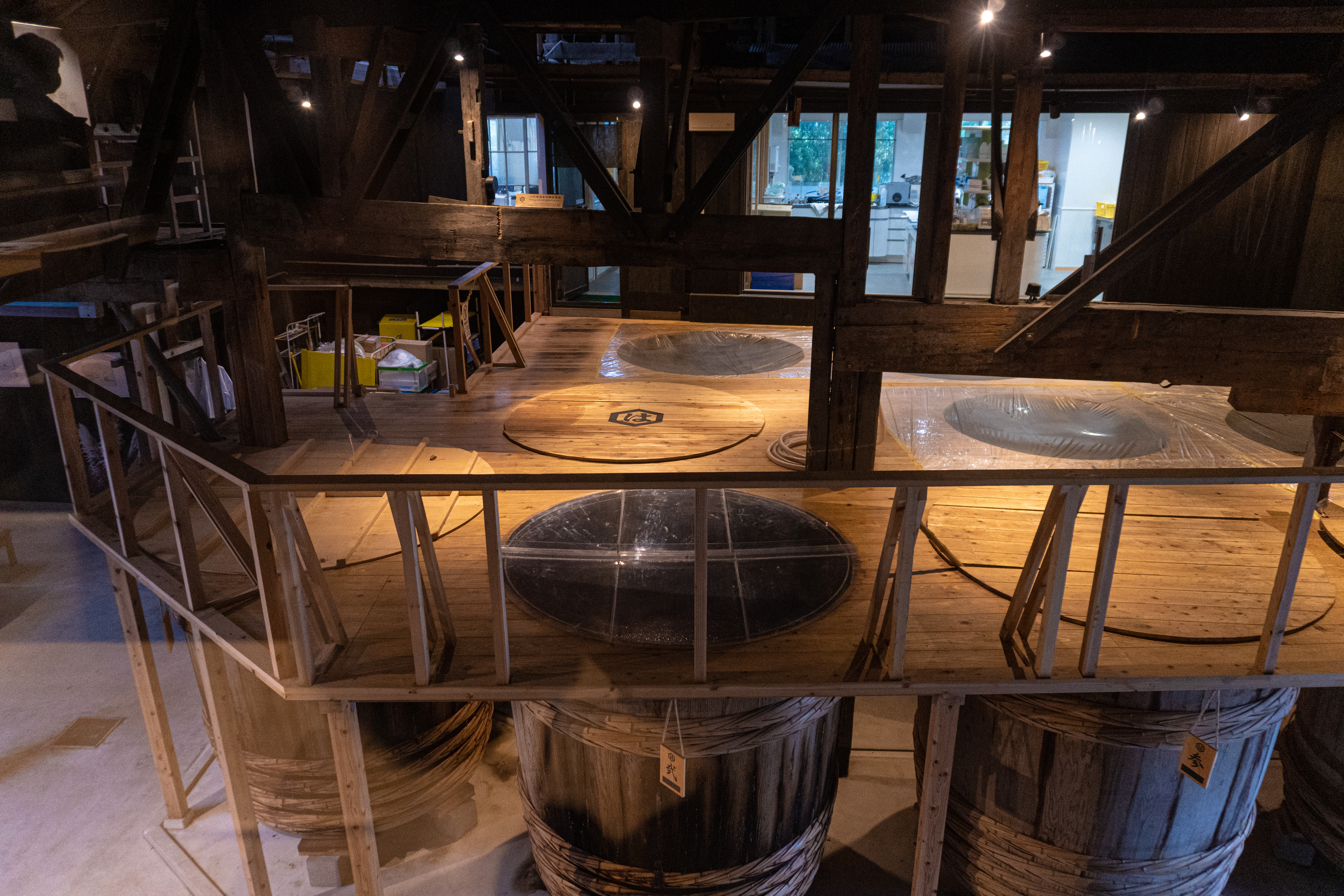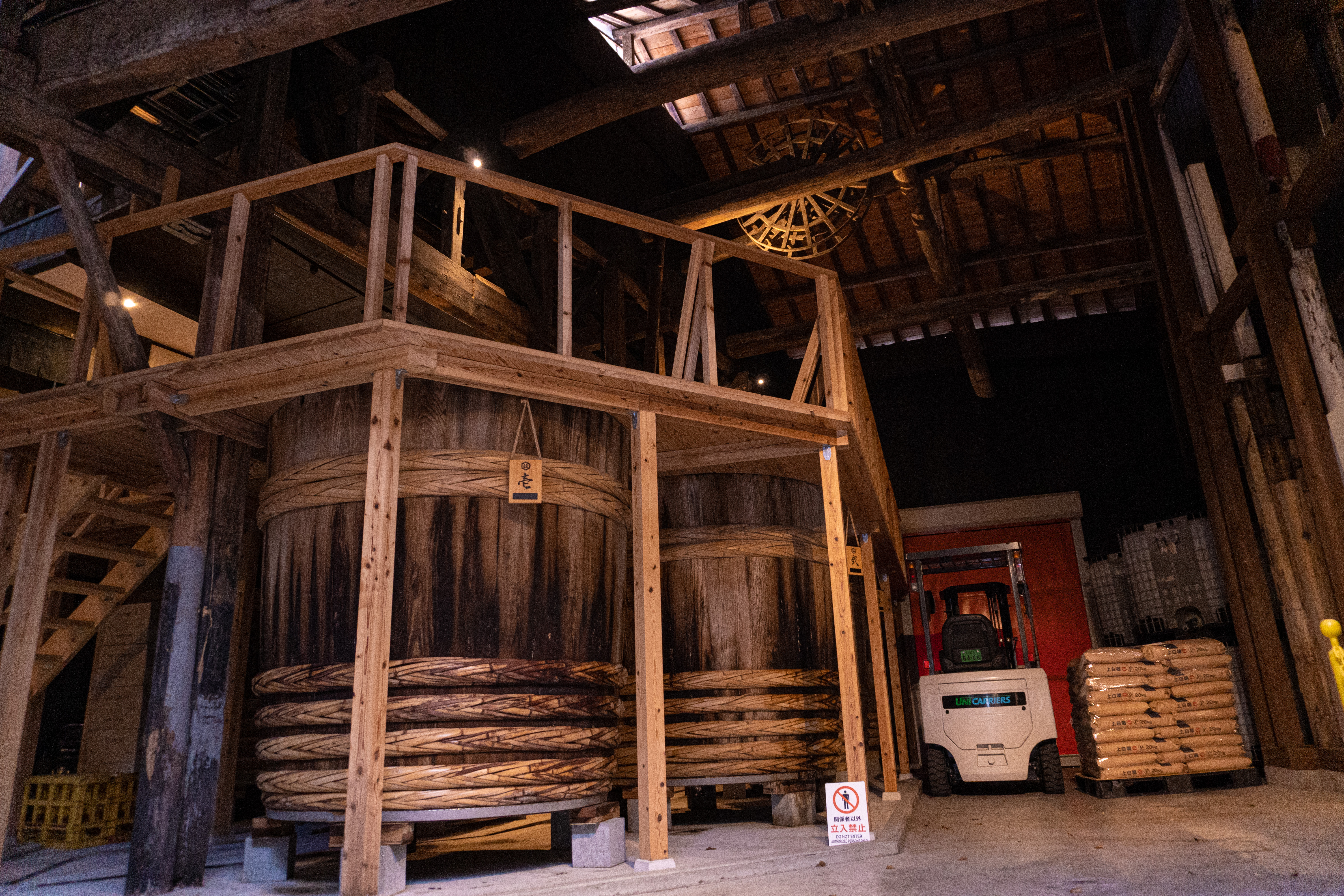 こちらは看板商品である醤油「7代目」を熟成させている木桶、それが10個あります。