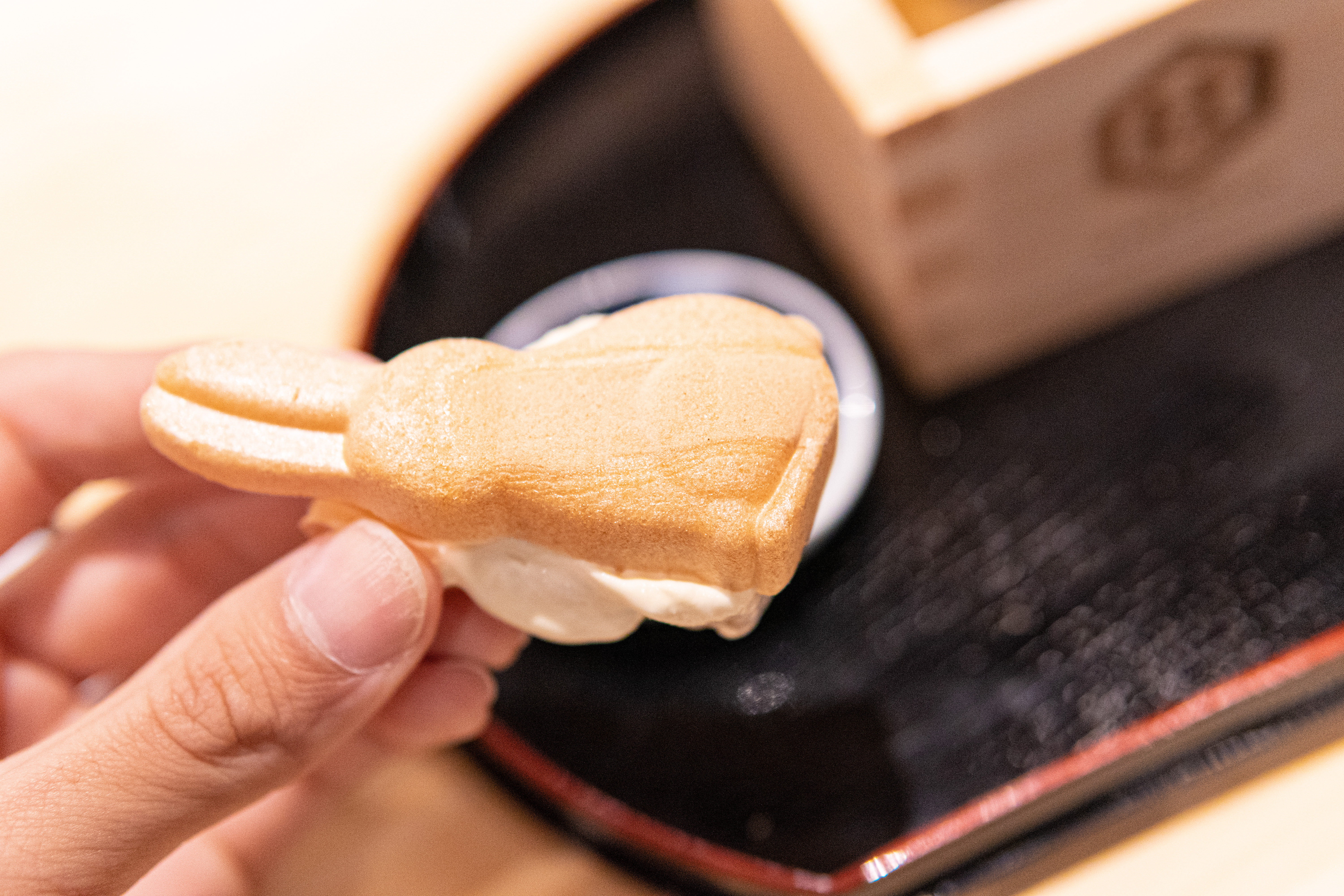 側にある可愛いうさぎデザインのモナカに挟んで食べる楽しみ方。