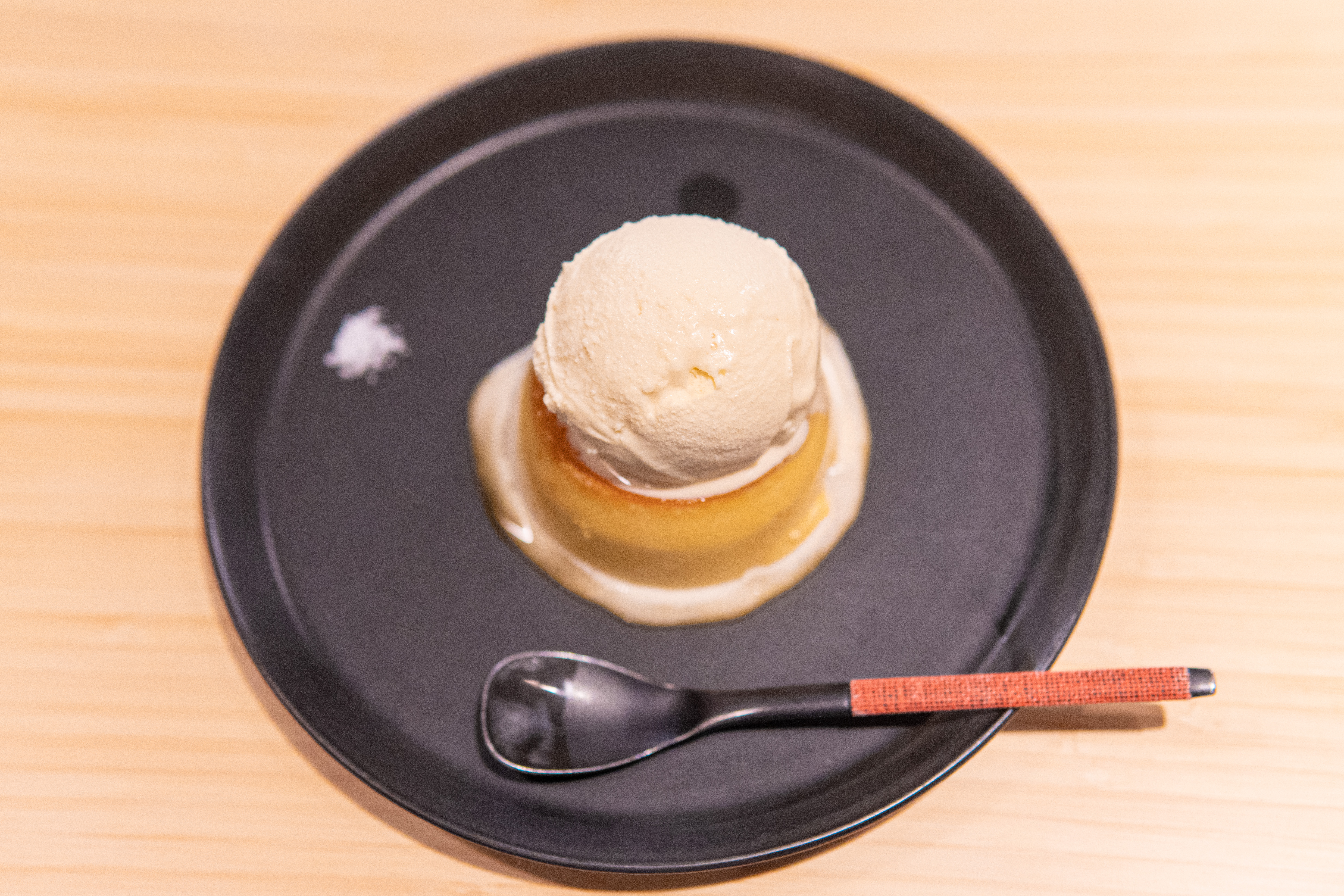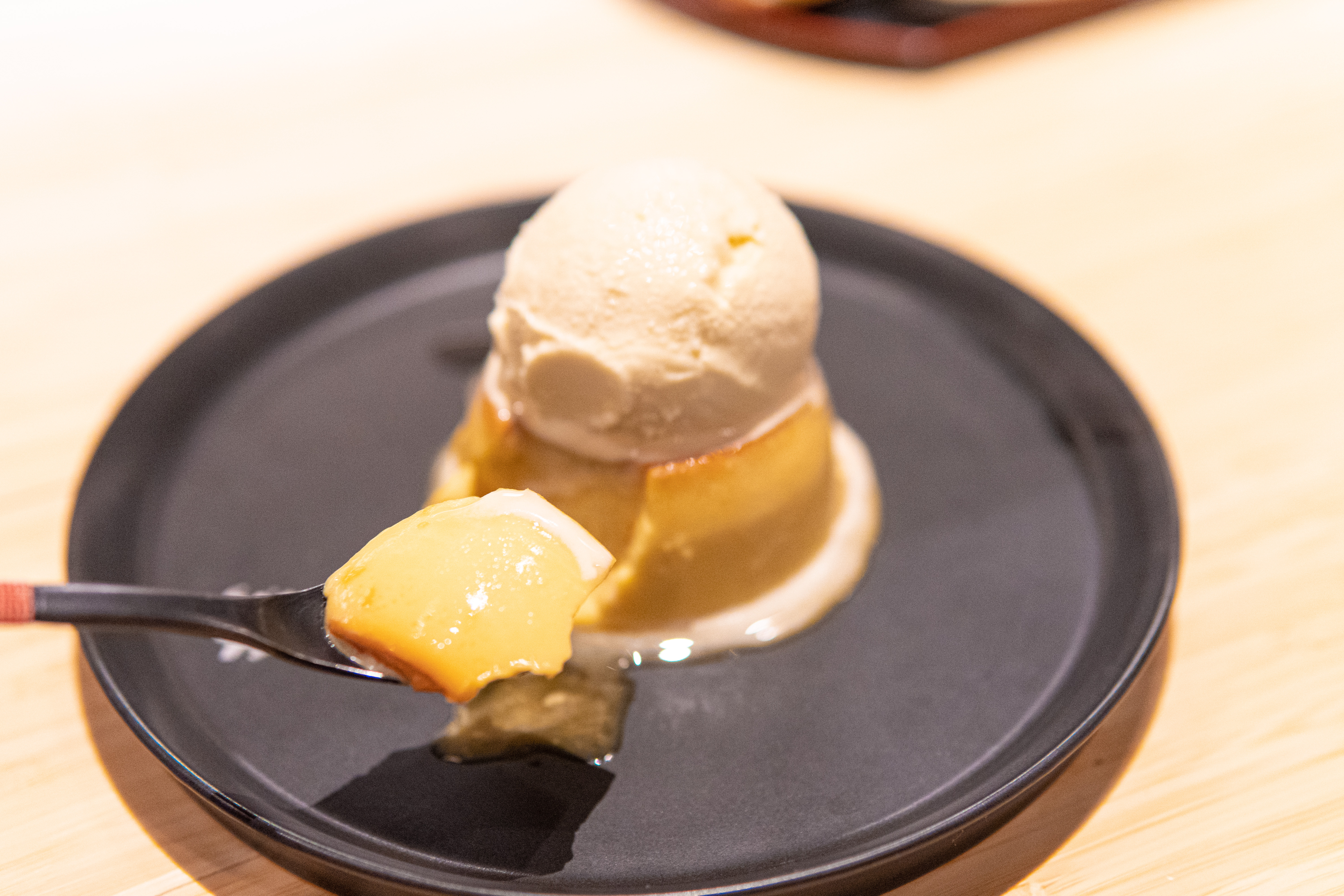 先ほどのソフトクリームと同様にプリン自体に醤油が含まれているんですが、より風味が強い印象。イメージとしては塩キャラメルに似ているかな?大人に好まれそうなプリンです。