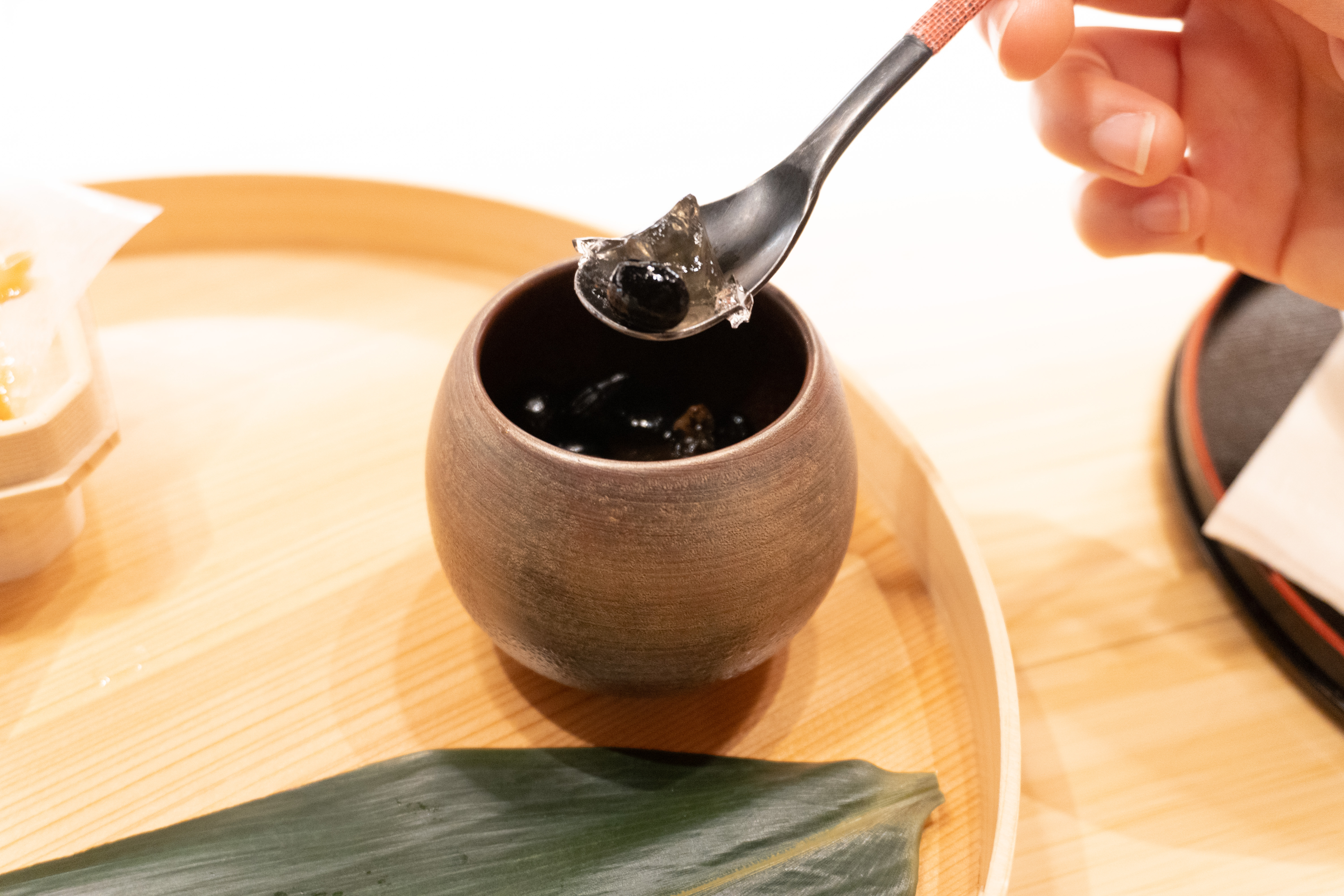 ほのかな梅の酸味と醤油の香りを堪能できる黒豆の組み合わせがとても上品で後味すっきり!