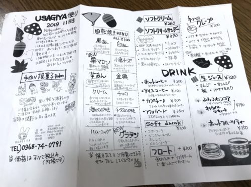 回転焼きのほかにも、ソフトクリームやクレープ、生ジュースなどもあり、子どもたちや学生さんにも大人気!「USAGIYA」という屋号は、山本さんの奥様が兎年であることからつけられたそうですが、手作りのお菓子も、お店の雰囲気も、本当にうさぎのようにかわいくて、ほっこり癒される素敵なお店でした!