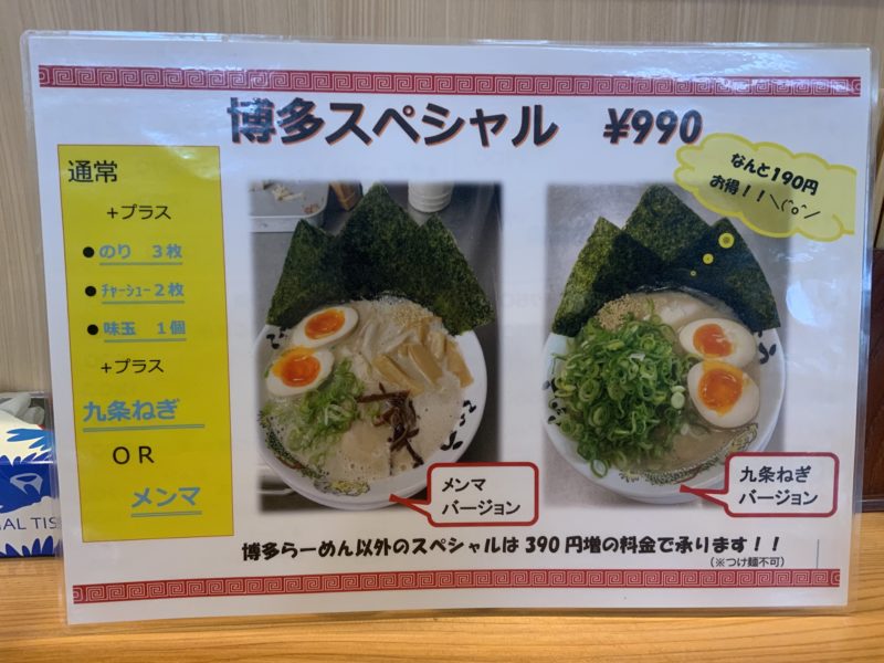 博多スぺシャルなるトッピングもりもり追加してある博多ラーメンもありましたが、
