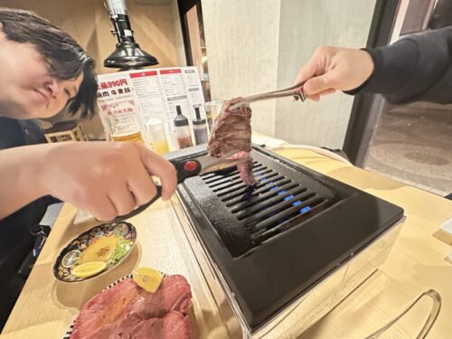 こちらのお肉は店員さんが1枚ずつ丁寧に焼いてくださいます。