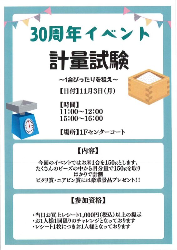 11月3日(月・祝)計量試験~1合ぴったりを狙え~