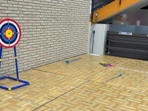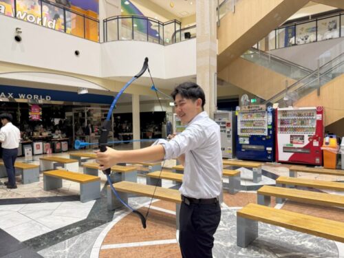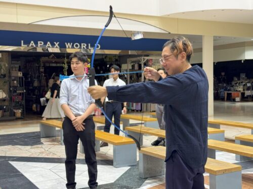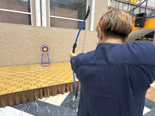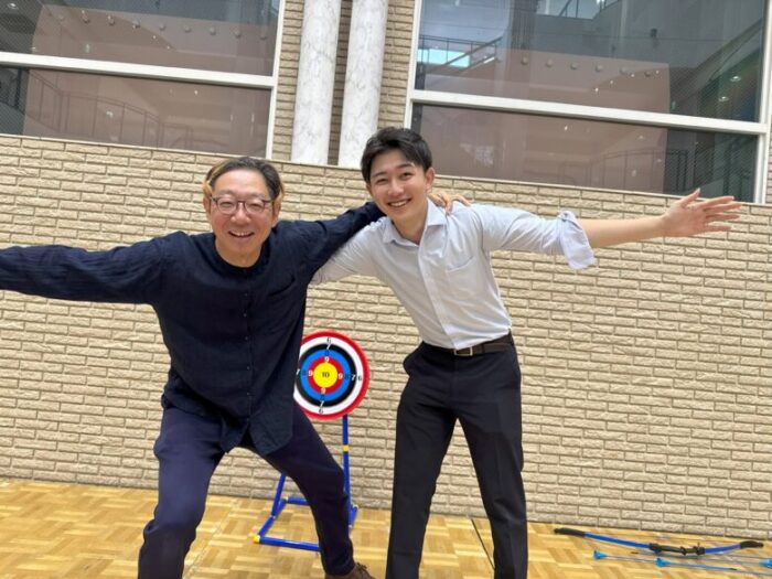 「そうですね。ここに弓矢を置く感じです!あと伊藤さん、持ち方が違います!」