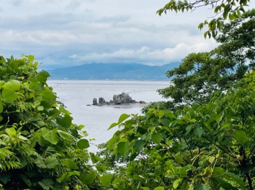 「いいでしょう?海の風は。素敵な島や色々見られましたか?」と言われ、こちらの住民の方なのだなあと色々お話を伺っていました。同じく通りかかりの方2名も交えて風を浴びながらプチ座談会のようなものが始まり、この山の木々の話や、それを研究する人達が居られること、子供の頃おやつ替わりに木の実を取って食べていたこと、たはれ島が枕草子にも詠まれた有名な島である事を聞きました。