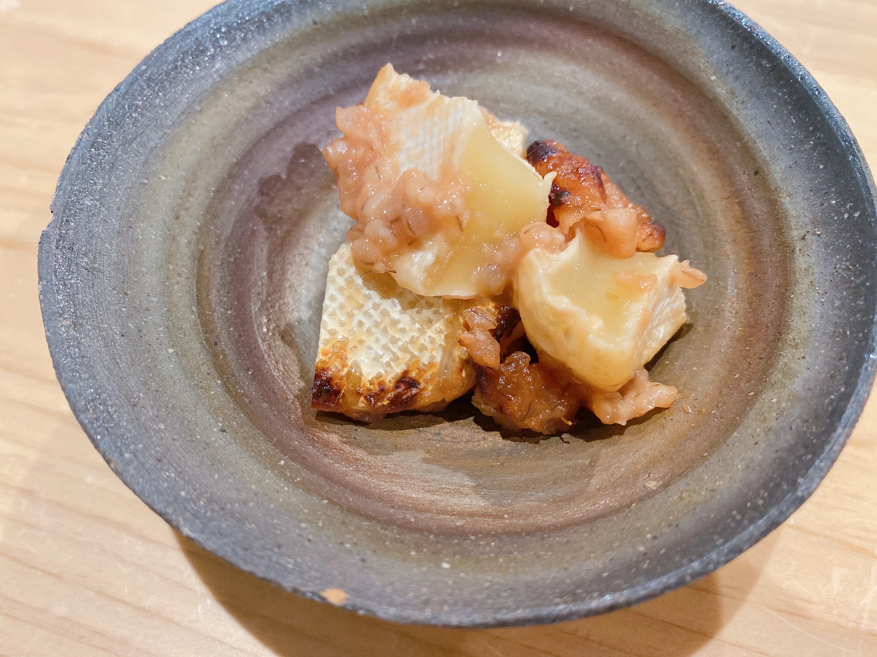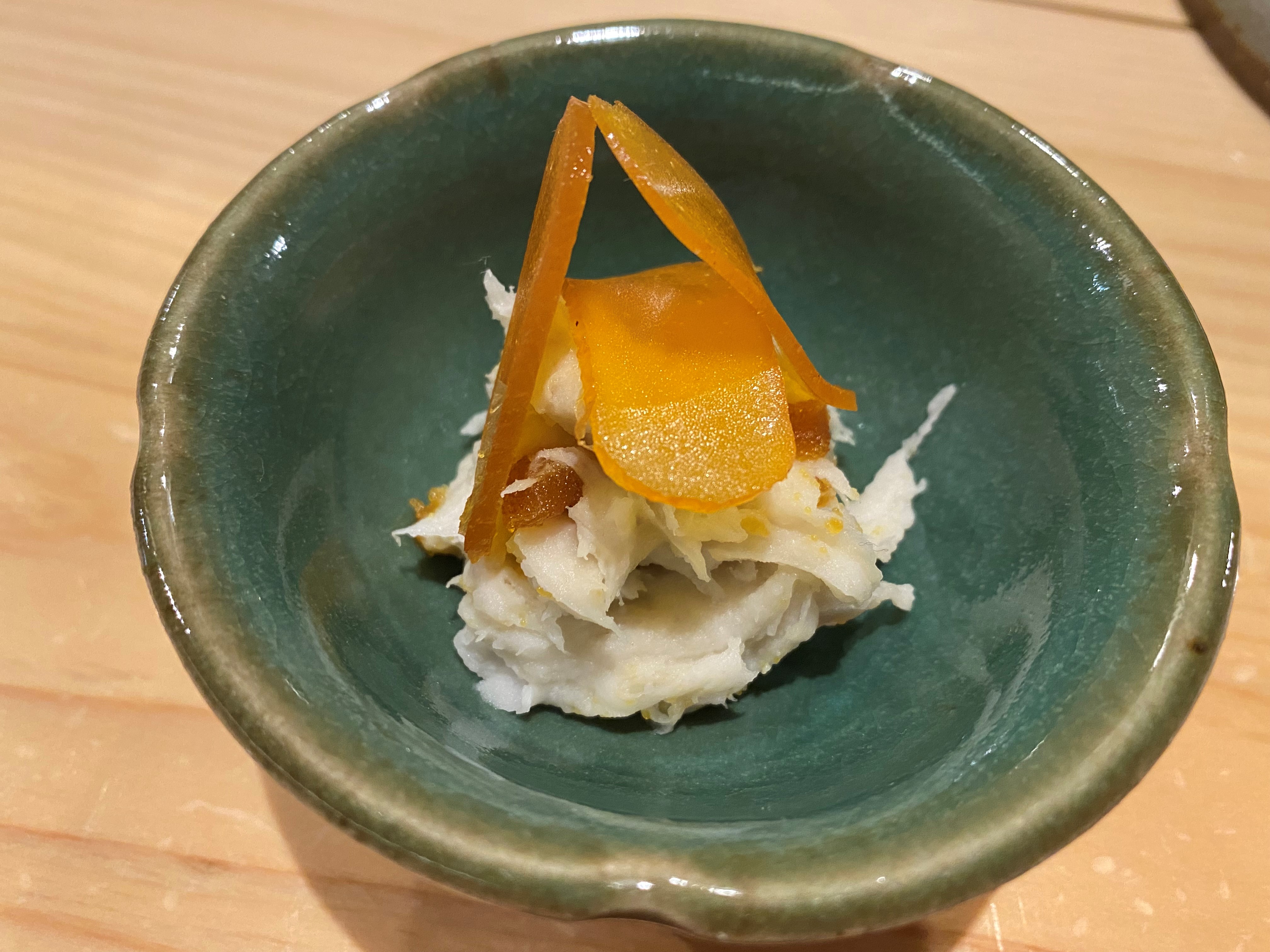 うらごしの里芋とからすみのポテトサラダ。里芋の優しい味とからすみが塩辛さがとても合う!