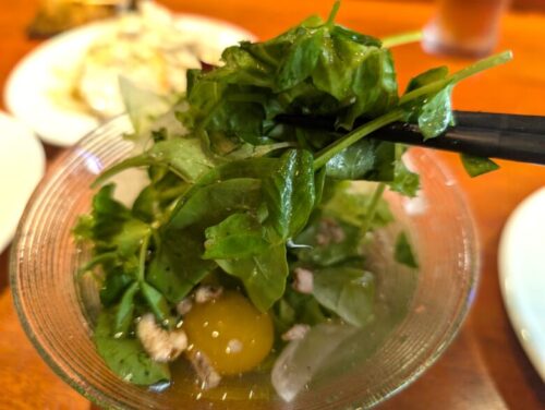 この「水サラダ」は、オーナーさんが従事された師匠から受け継いだという秘伝のメニューとのこと。