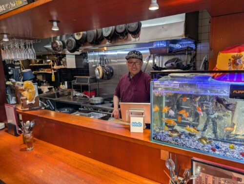 カウンター席には大きな水槽があり、「お待たせしても、魚を眺めてもらったら気が紛れるかなと思って(笑)」と笑顔で話してくれました。