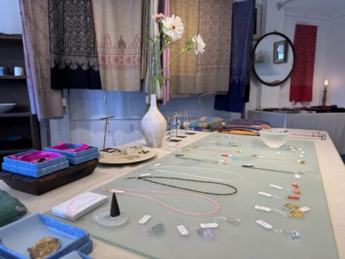そしてこちらの展示はNatsuko Sakuraiのジュエリー。「インドや旅先から得た物語りをデザインに落とし込み表現した、現代の女性たちにおくるジュエリー」というコンセプトとの事。
