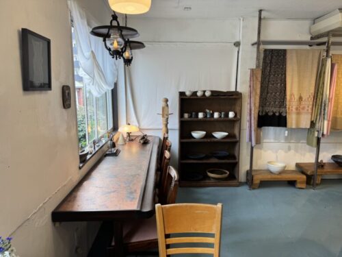 こんにちは~。伺ったのは3月。こちらのお店ではオーナーの中村さんの選んだこだわりの手仕事作品が、月に1,2回入れ代わり立ち代わりで楽しめます。