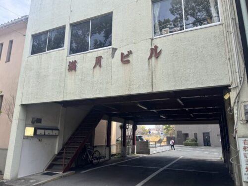 満月ビル到着。こちらの3階に「vertigo」(ヴァーティゴ)があります。ビルの下が駐車場です。ビル内の店舗別に借りてあるので、車でお越しの際はInstagramのメッセージにてお尋ねください。近くには広いコインパーキングもありますので、そちらも便利ですよ!