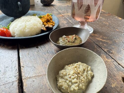 ほうれん草のヨーグルト和え、人参、茄子、菜の花…素晴らしく素材の味を感じられて、春の味覚で身体の中に花が咲きそう。