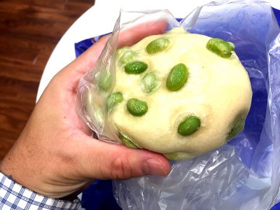 このずんだ餅ならぬ「ずんだあんぱん」が、緑豆のビジュアルといいとても気にかかりました!