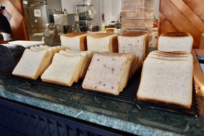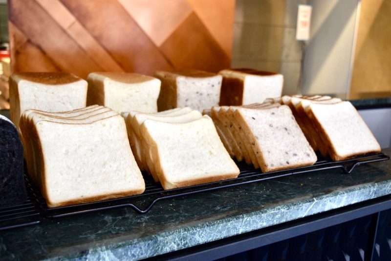 正方形の食パンはオーソドックスな「プレーン」から、ヘルシーな「21雑穀」など4種類。