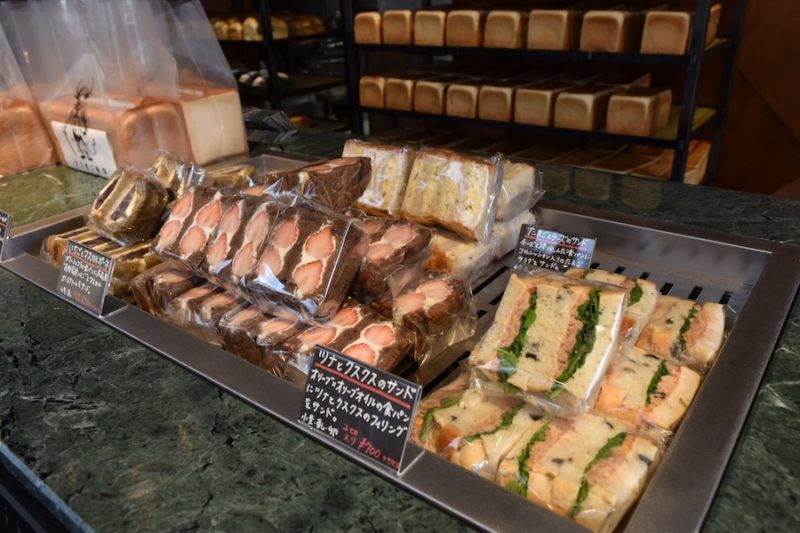 そして、色んなフレーバーが楽しめるちょっと小さめの食パン「petit(プティ)」があるんです! ガトーショコラ(一番左、税別520円)や竹すみ&ドライトマト(一番右、税別520円)など、デザートやおかずになってしまいそうなラインナップ。