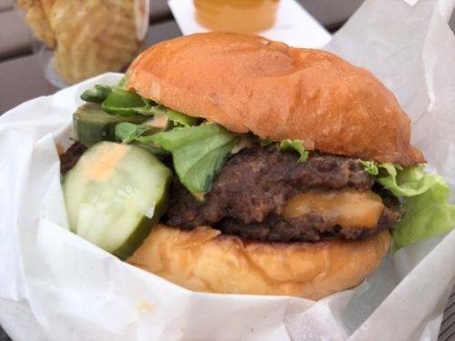 こちらのハンバーガーは、スマッシュバーガーという、あえてパテを薄くして焼いたハンバーガー。薄く焼くことで、ふちが香ばしくなり、おいしさが倍増するそうです。味にこだわって、合いびき肉は使わず、「加茂川」から仕入れた牛肉のみを使用されているとのこと。さらにそれが2枚も入っているので、ボリュームもしっかりあります!