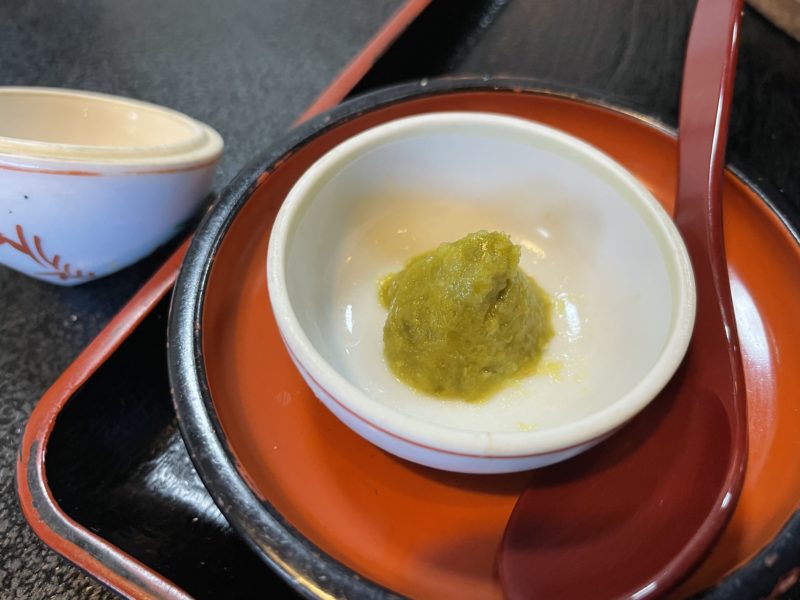 柚子胡椒も一緒についてきます。ちょいちょい入れながら食べましょう。