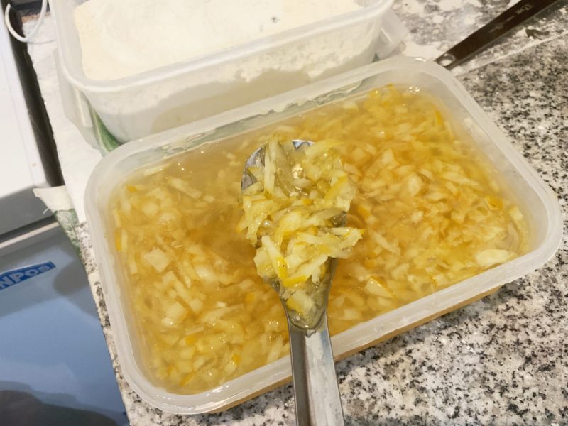 この自家製の蜜漬けレモンをたっぷり載せていきます!