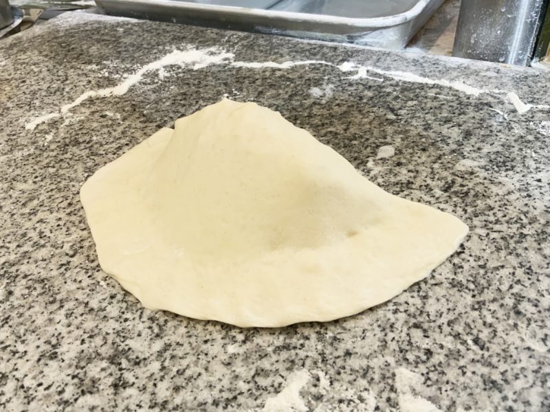 注文を受けてから、生地をこね始めてくれます!生地は揚げピザ用に配合したもので、揚げてももちもちになるのが特徴。