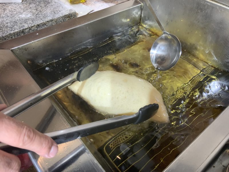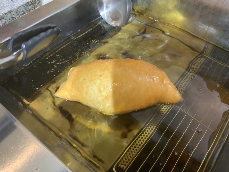 これを油にボトンと落とすと、プクプク膨らんでいくんです!浮いてくるので油をかけながら一つ一つ丁寧にあげていきます。