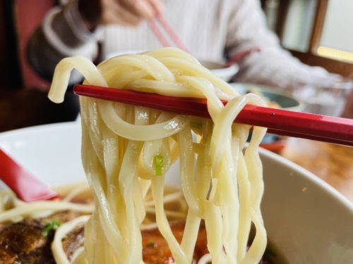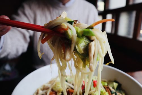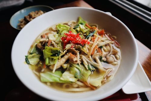 お野菜たっぷり。「見た目、ほぼチャンポンだから」と店主さんが言われていましたが、鰹節、鯖節、むろあじ節、豚ゆで汁など、沢山の風味が溶け込んでいます。