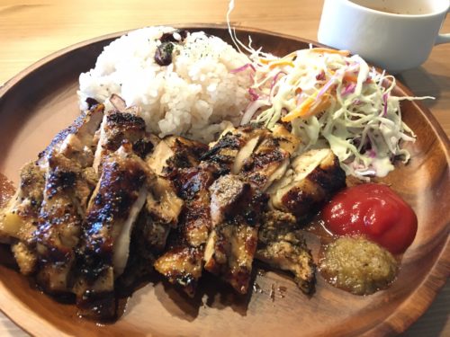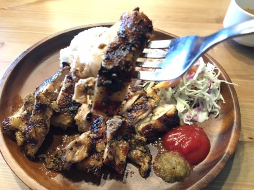 ジャークチキンプレートを食べてみると、グリルでじっくり焼かれたチキンが香ばしくて、なんともスパイシー!