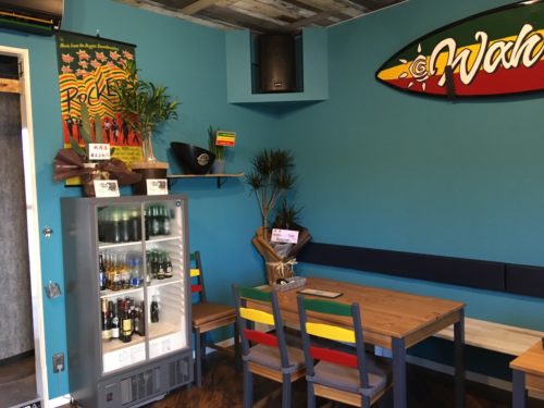 店内は、ラスタカラーと呼ばれる赤・黄・緑・黒を基調としたポップで明るい雰囲気。BGMにはレゲエが流れ、心地よい異国感が漂います。