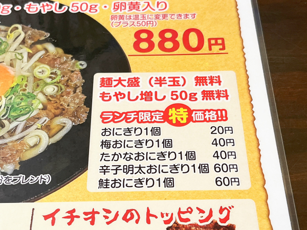 ランチ限定でおにぎり1個20円
