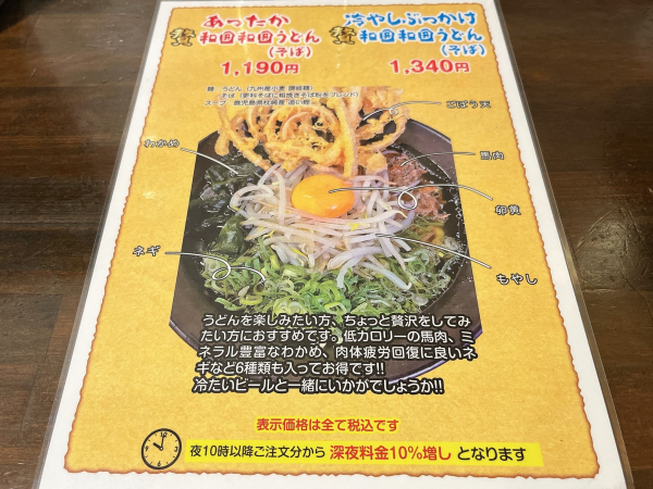 うどんは、他にも馬肉うどんがパーアップした和囲和囲うどんもあります。