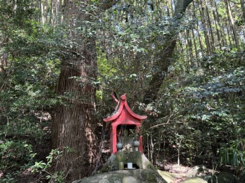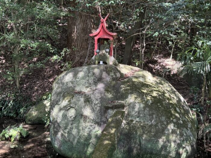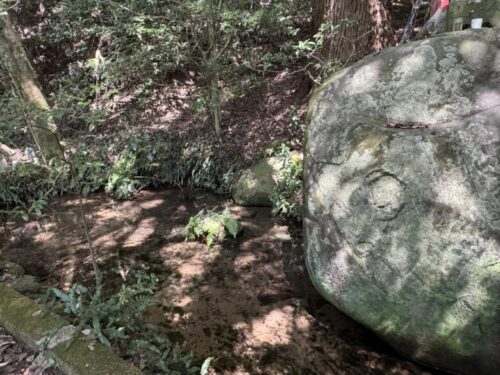 大きな岩がありました。どこからきたのでしょう、とても不思議で、その上に水神さまがいらっしゃいます。
