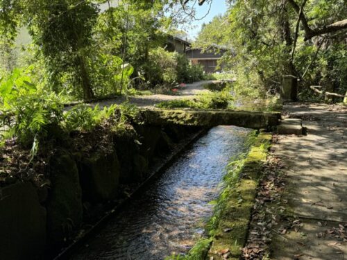 流れ出た水は光をたっぷりと含みながら、キラキラと流れてゆきます。水量も多くなく、鬱蒼としていることから、好き嫌いの湧かれる水源かと思いますが、