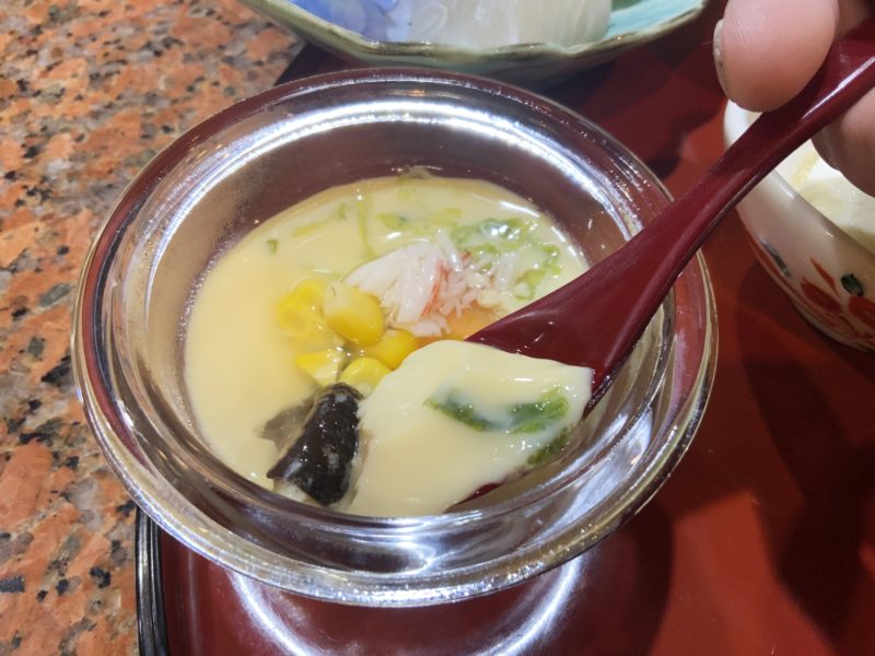 茶碗蒸しはひんやり冷製で。夏の暑い日にはたまらないです。