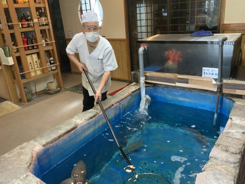 めっっっっっっっちゃでっかいいけす。天草から直送の魚が元気に泳いでいます。