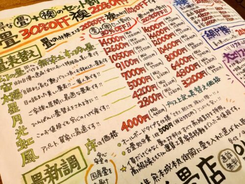 この湯前畳店のチラシでお見受けするお人柄そのもの。このチラシには熱狂的なファンが多い事でも知られております。