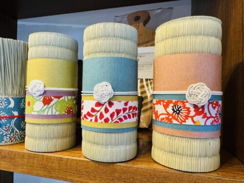 畳の縁がお店にずらりと並んでおります。だるまや動物がとても可愛い。「縁は踏まないように」と祖母から言い聞かされていた幼少期を思い出します。そして畳でお昼寝をして、顔にたくさんの畳の模様がついていた夏休み。