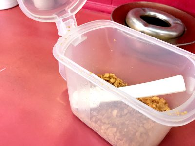 テーブルには容器に入ったニンニクチップがあり、好みで入れ放題!