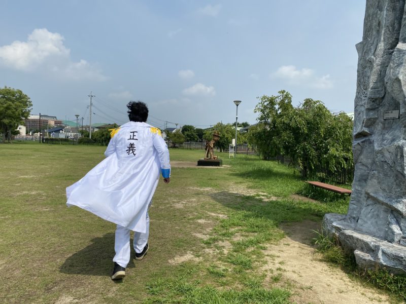 やってきました。熊本県庁。県警本部も同じ敷地にあるこの場所に怪しさ満点の格好でやってくるのは勇気がいりましたが、ワンピース関連なら許されるでしょう。これまでどこに行っても冷たい視線でヒエヒエでしたが、県の職員さんたちは慣れたものなのか暖かく見守ってくれていました。