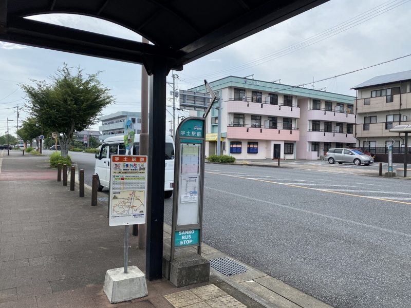 今度はこちらの宇土駅前のバス停からジンベエ像ができた住吉海岸公園に行くのですが