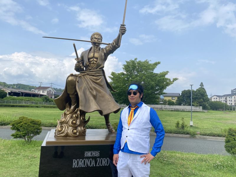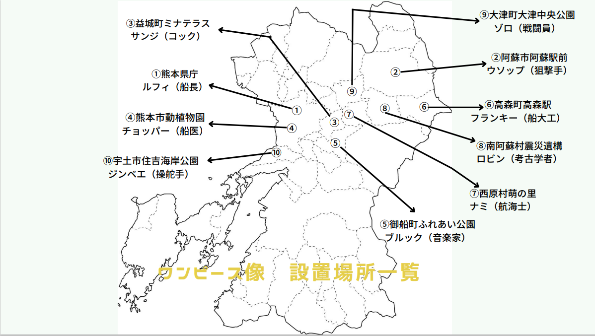 熊本県庁に2018年11月に設置された「ルフィ像」を皮切りに、今年1月に大津町に設置された「ゾロ像」まで9体の像が熊本地震からの復興を目的に設置されているアレです。