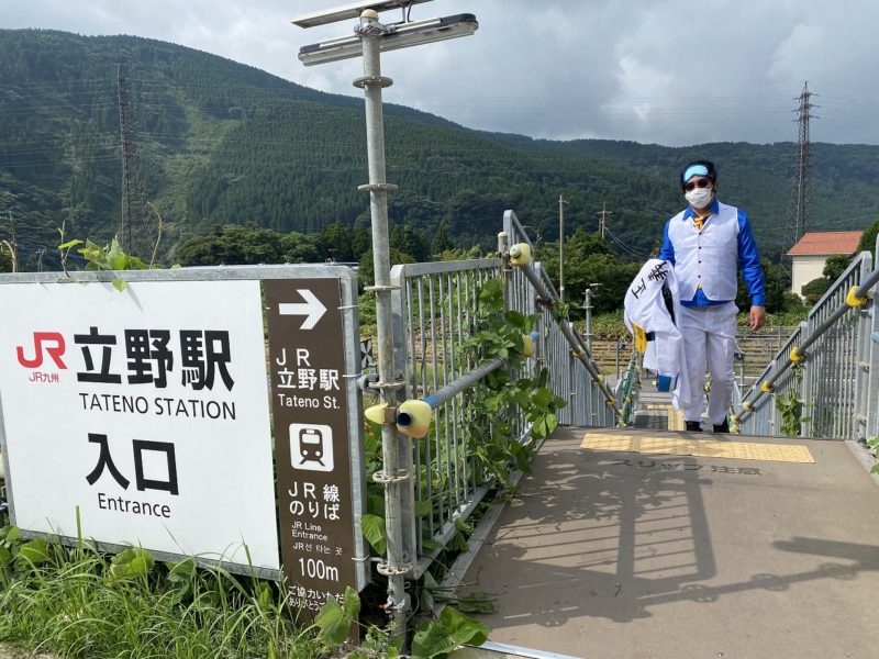 高森駅でフランキー像!コーラも飲もう!!
